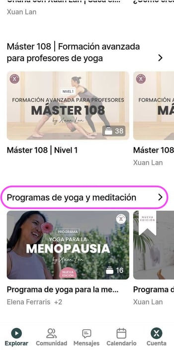 • Desde app móvil o tablet: Descarga la app de Xuan Lan Yoga, ve a Programas de Yoga y Meditación desde la pantalla de inicio.