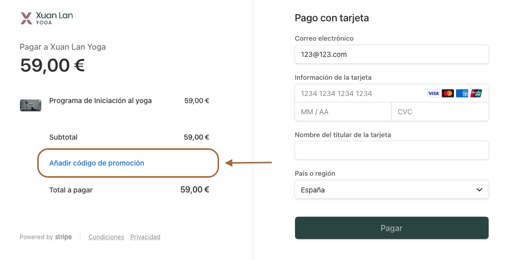 3. Introduce el código del cupón en el campo Añadir código de promoción: