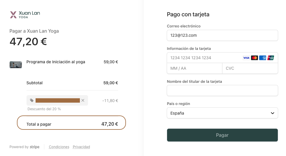Si el descuento se ha hecho para utilizarlo en tu suscripción a XLYStudio sigue el siguiente artículo: