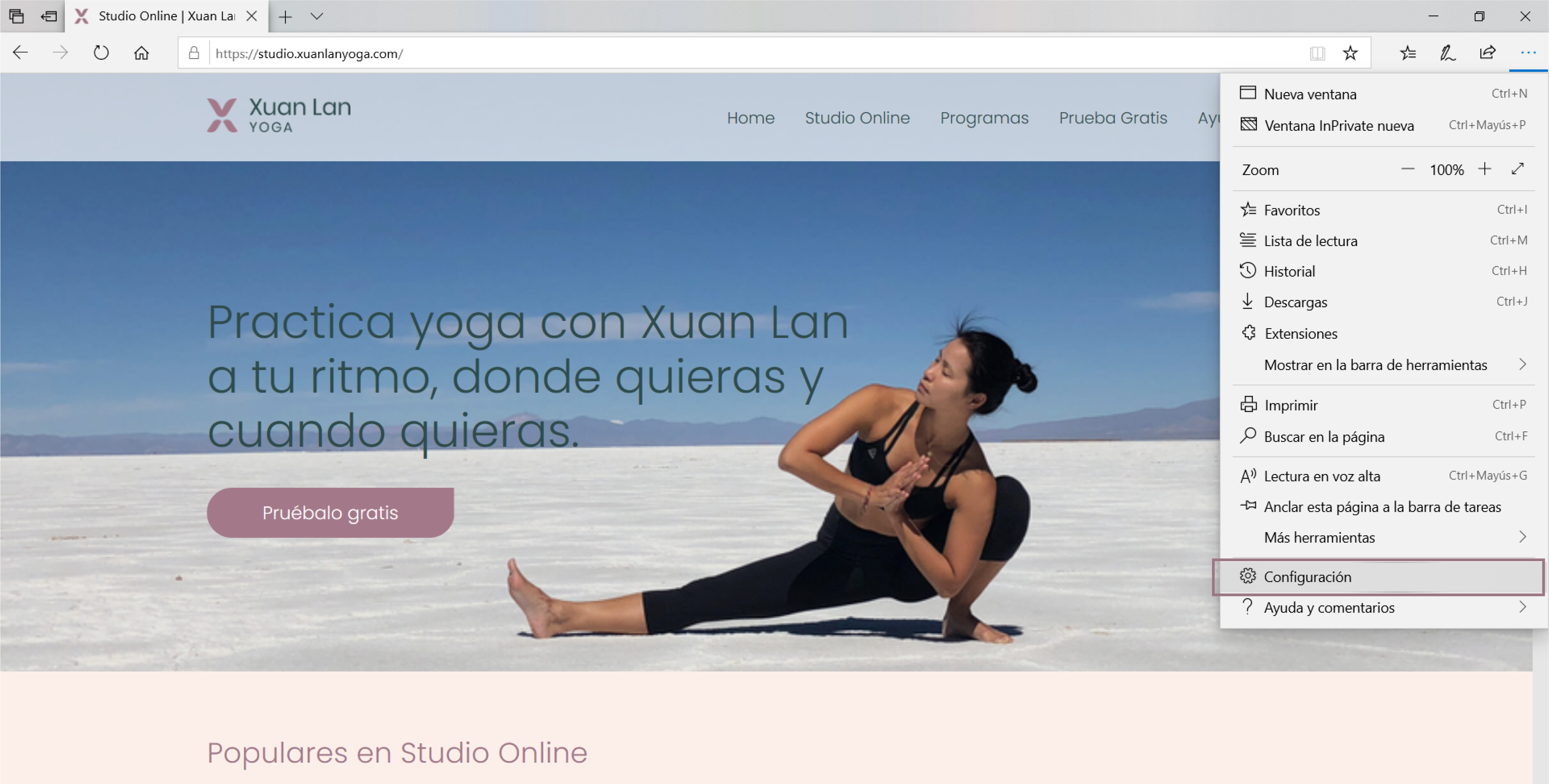 - Haz clic en el icono de los 3 puntos (…) en la parte superior derecha de la ventana del navegador y accede a Configuración.