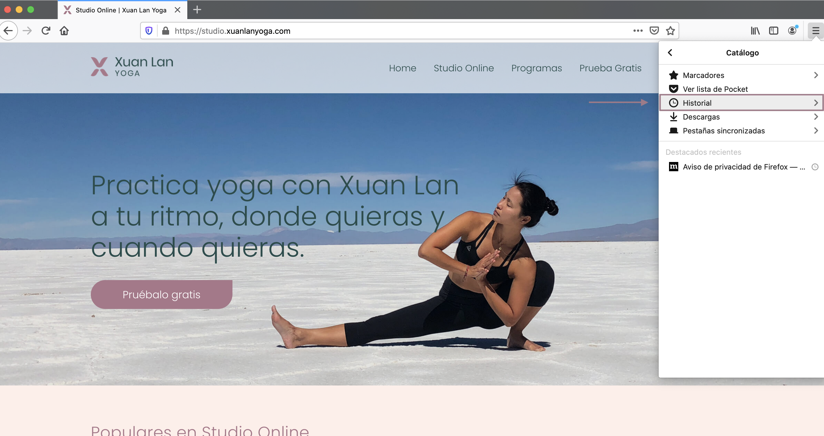 - Dentro de Catálogo, haz clic en ‘Historial’.