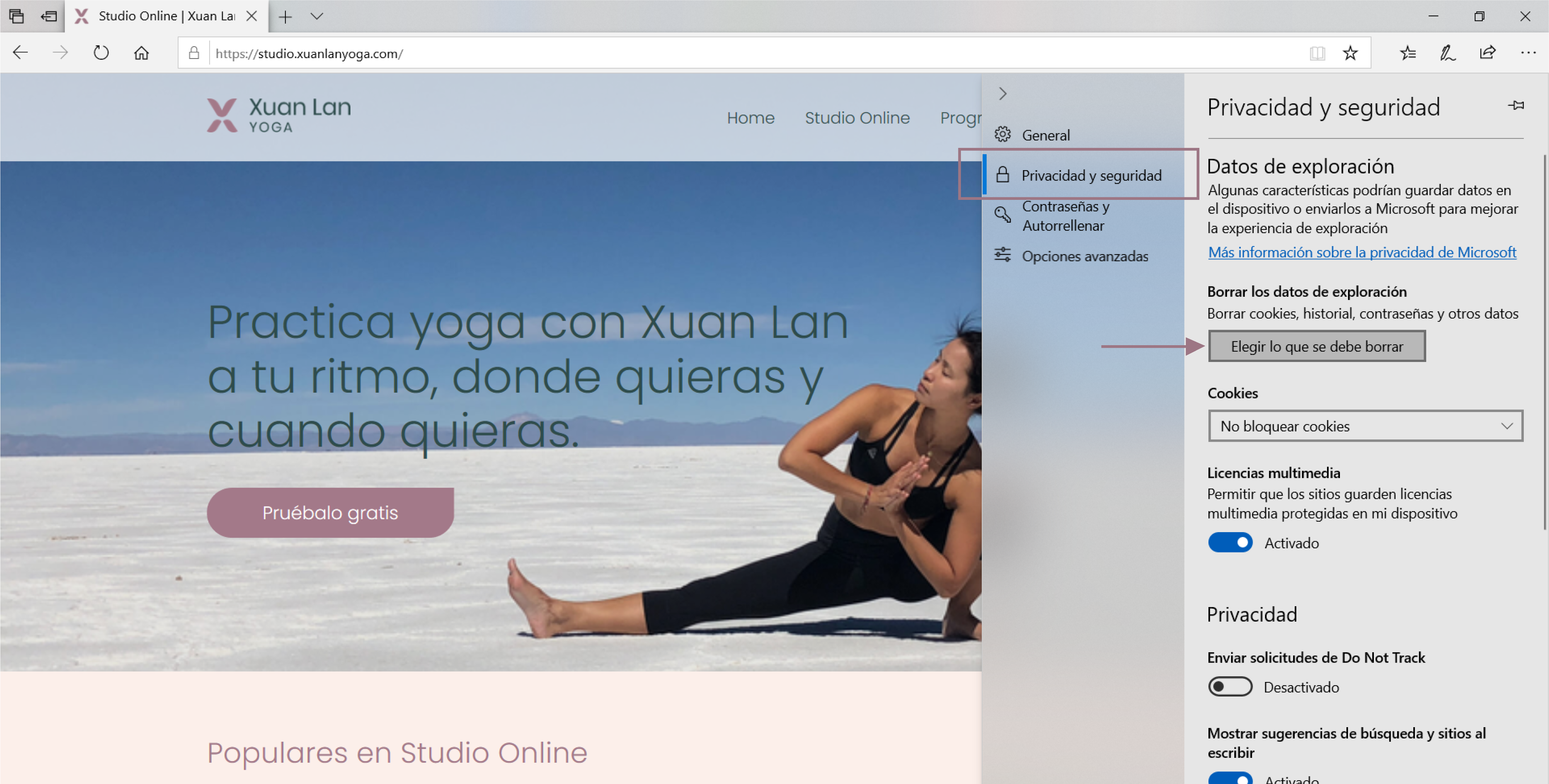 - Tambien puedes ir desde Preferencias > Privacidad > Cookies y otros datos de sitios web.