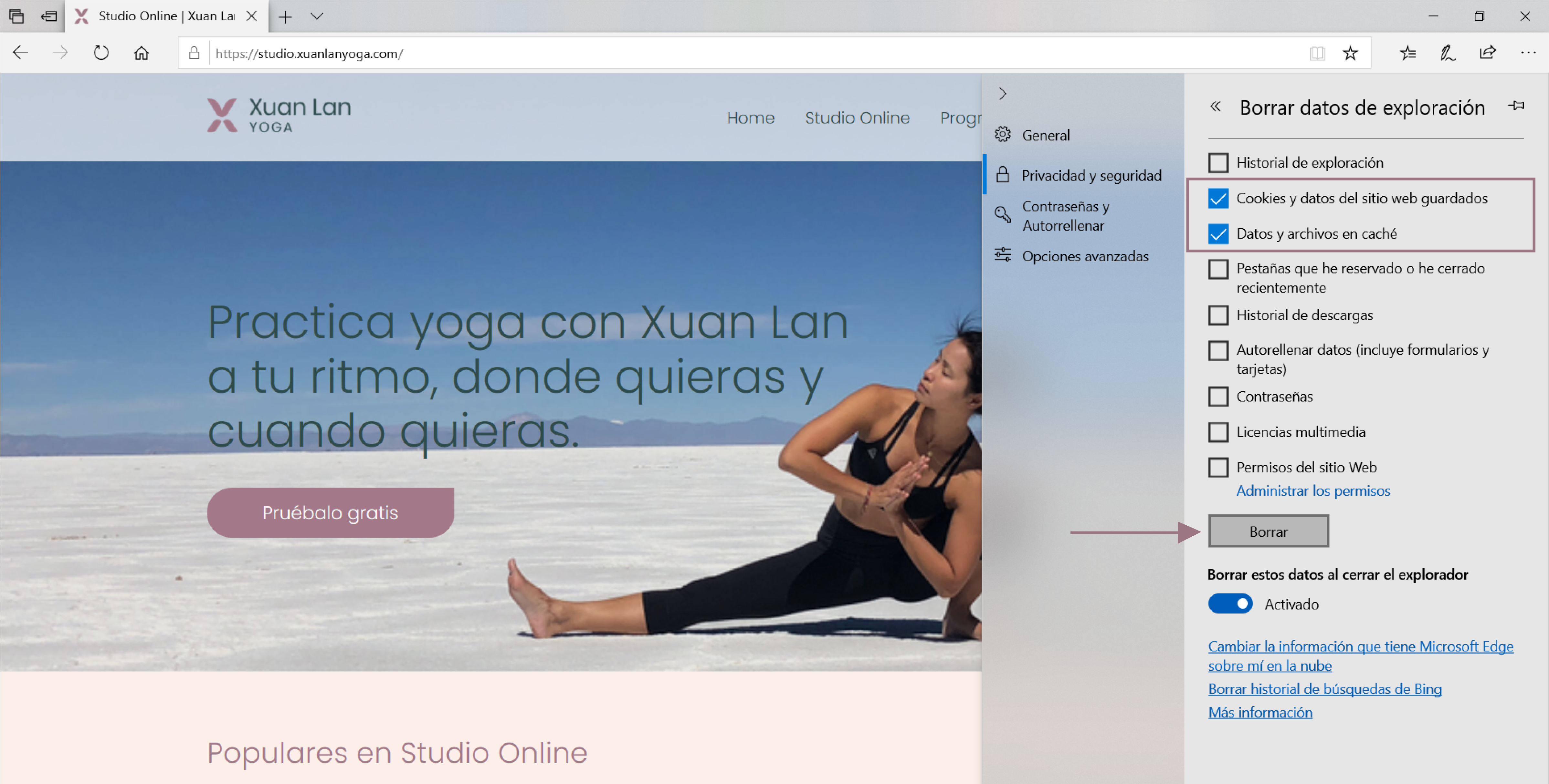 - Selecciona Borrar datos de navegación.