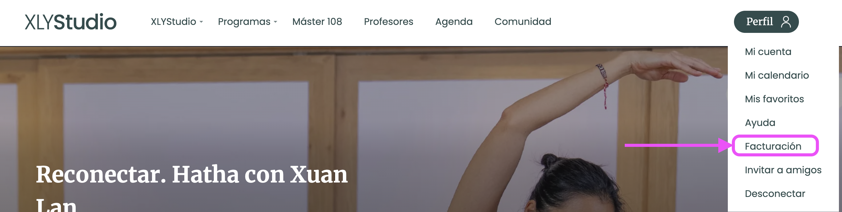 - Haz clic en Perfil (esquina superior derecha) y selecciona Facturación
