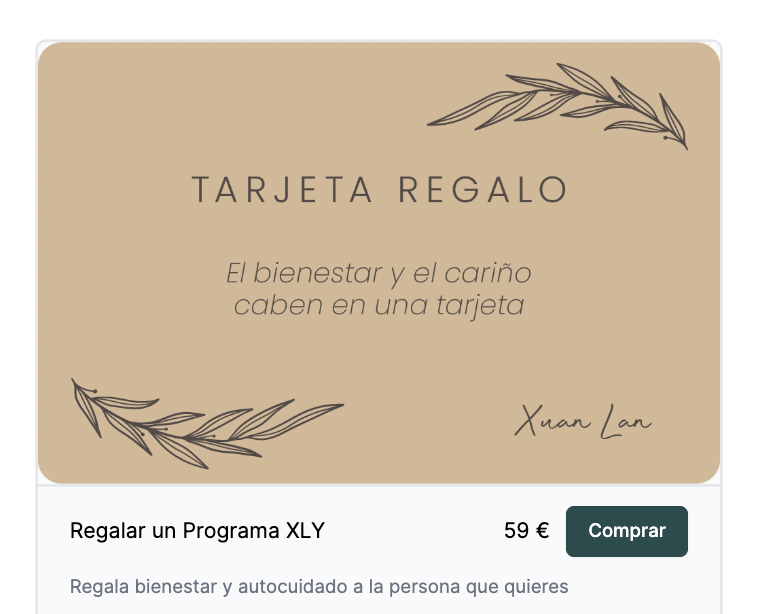 - Las tarjetas regalo para suscripciones y Programas no son válidas para productos de la Tienda online de Xuan Lan Yoga.