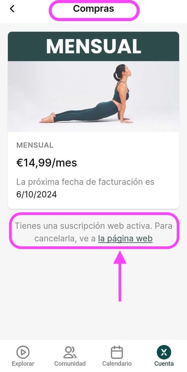 3. Verás un mensaje: "Tienes una suscripción web activa. Para cancelarla, ve a la página web".