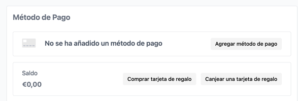 3. Dentro de la pestaña Facturación verás la información de tu método de pago actual (si es que has registrado uno).