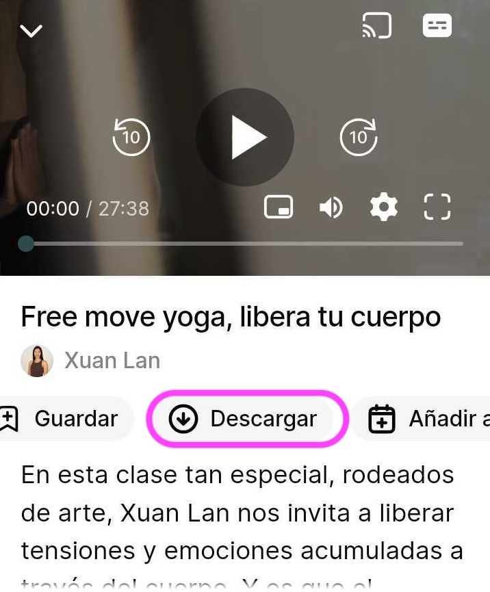 Los vídeos descargados estarán disponibles para su reproducción offline durante 30 días. Transcurrido este tiempo, podrás volver a descargar el vídeo.
