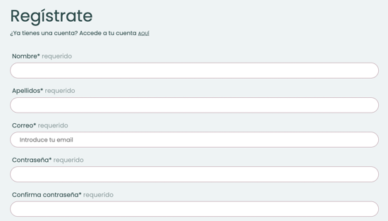 - Completa tus datos: nombre, apellidos, correo y una contraseña segura.
