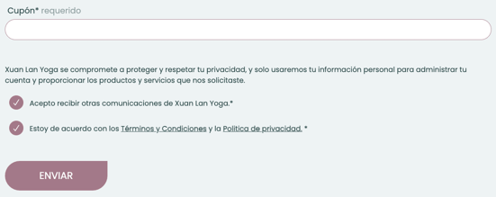 - Introduce el código, acepta los términos y condiciones y haz clic en Enviar.
