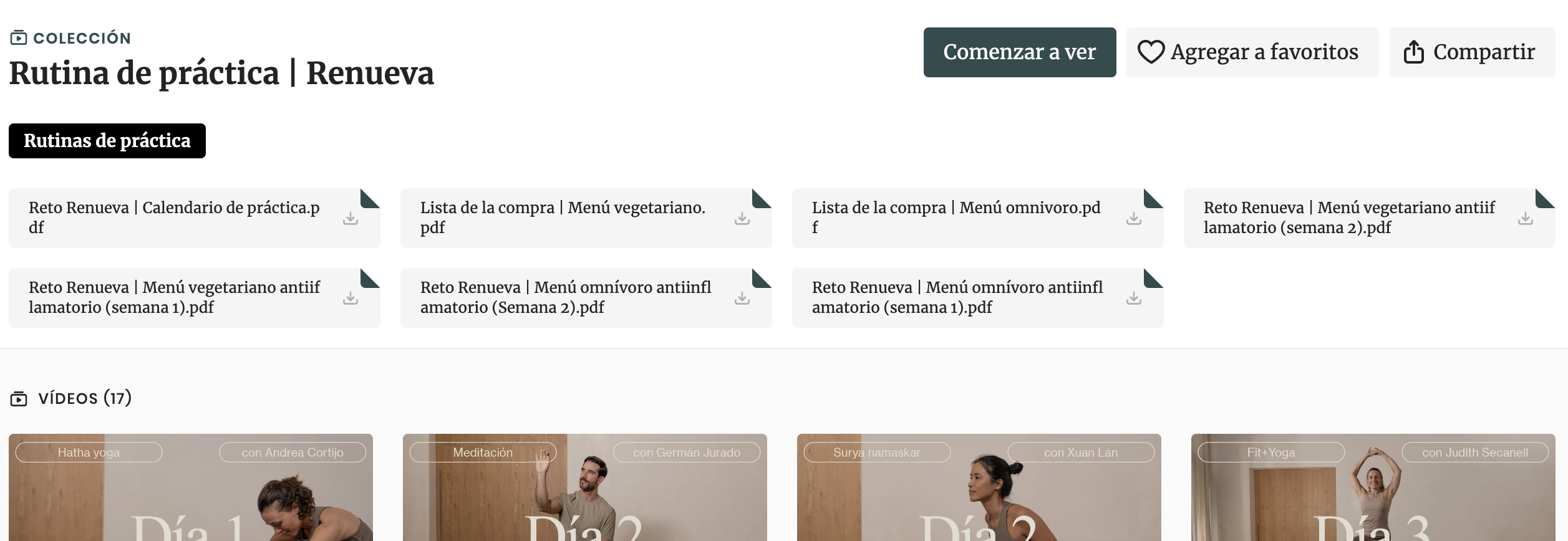 3. Encima de los vídeos, encontrarás todos los materiales disponibles para descargar: