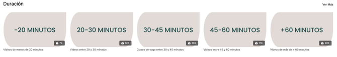 Vídeos organizados según su duración, desde clases exprés hasta talleres largos, para que puedas adaptar tu práctica a tu disponibilidad de tiempo.