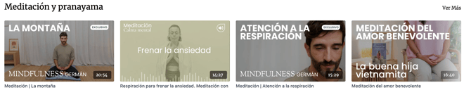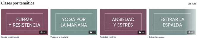 Vídeos organizados por necesidades concretas: ansiedad, estrés, flexibilidad, detox, equilibrio, prácticas para embarazadas, para teletrabajo, para movilidad reducida y más.