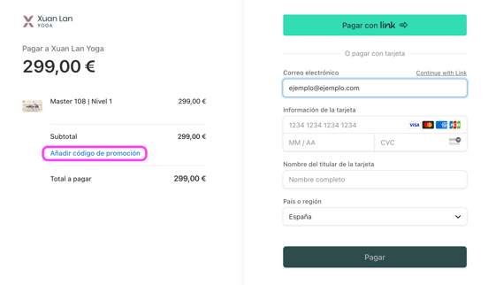 NOTA: Si tienes un cupón de descuento, puedes aplicarlo presionando "Añadir código de promoción".