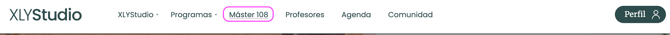 • Desde ordenador: entra en xlystudio.com, inicia sesión y ve a “Máster 108” en el menú superior: