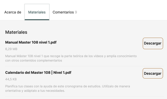 Sí, desde la app móvil puedes descargar las clases y los manuales para verlos sin conexión. Por protección de derechos de autor, los vídeos no pueden descargarse en ordenador. Te recomendamos ver toda la información: ¿Cómo puedo descargar un vídeo dentro de las apps móviles?
