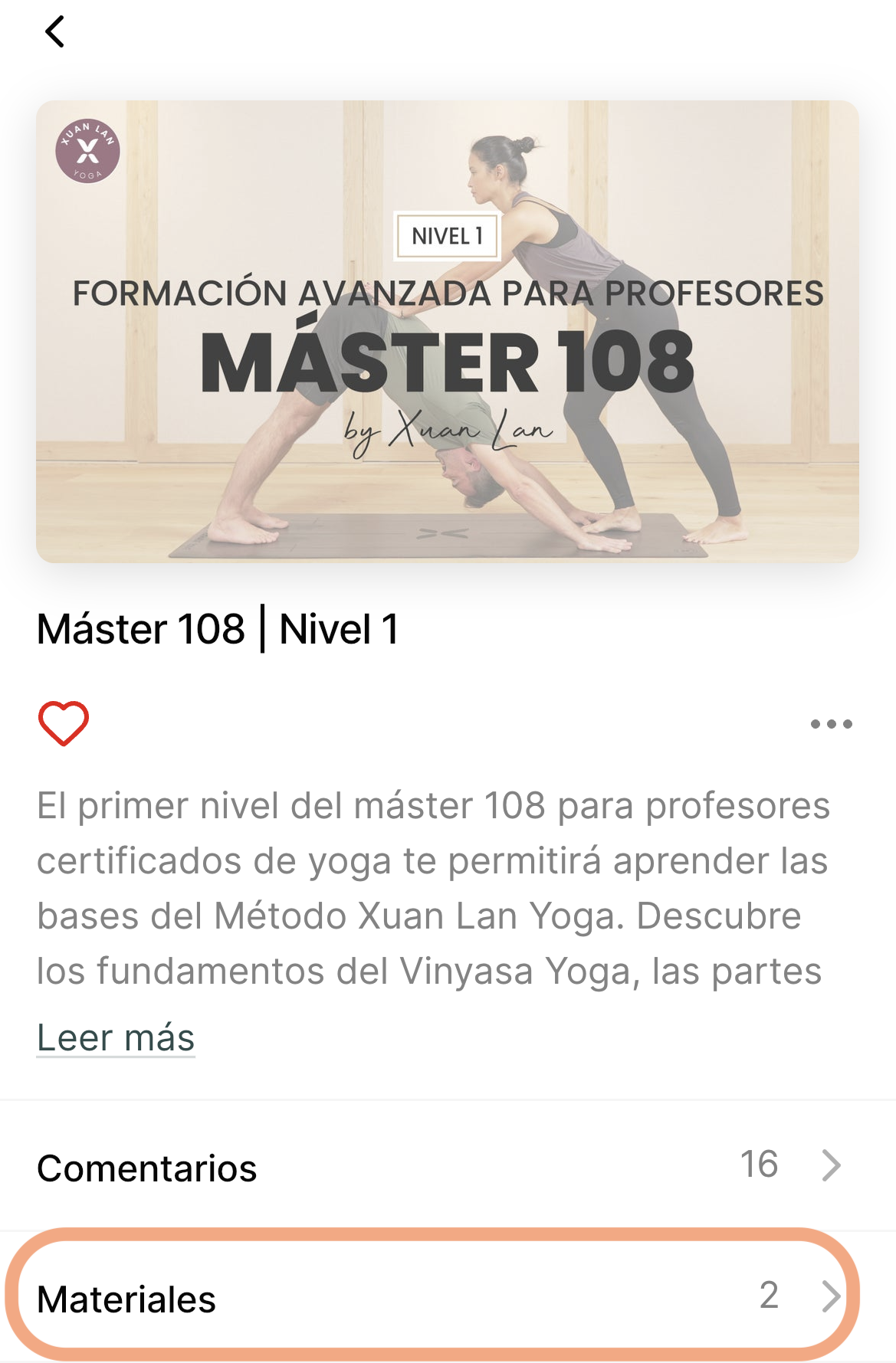 - Desde móvil o tablet: descarga la app de Xuan Lan Yoga, inicia sesión y busca “Máster 108” en el apartado Mi biblioteca o Explorar.