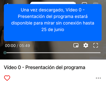Los vídeos descargados estarán disponibles para su reproducción offline durante 30 días. Pasado este plazo: