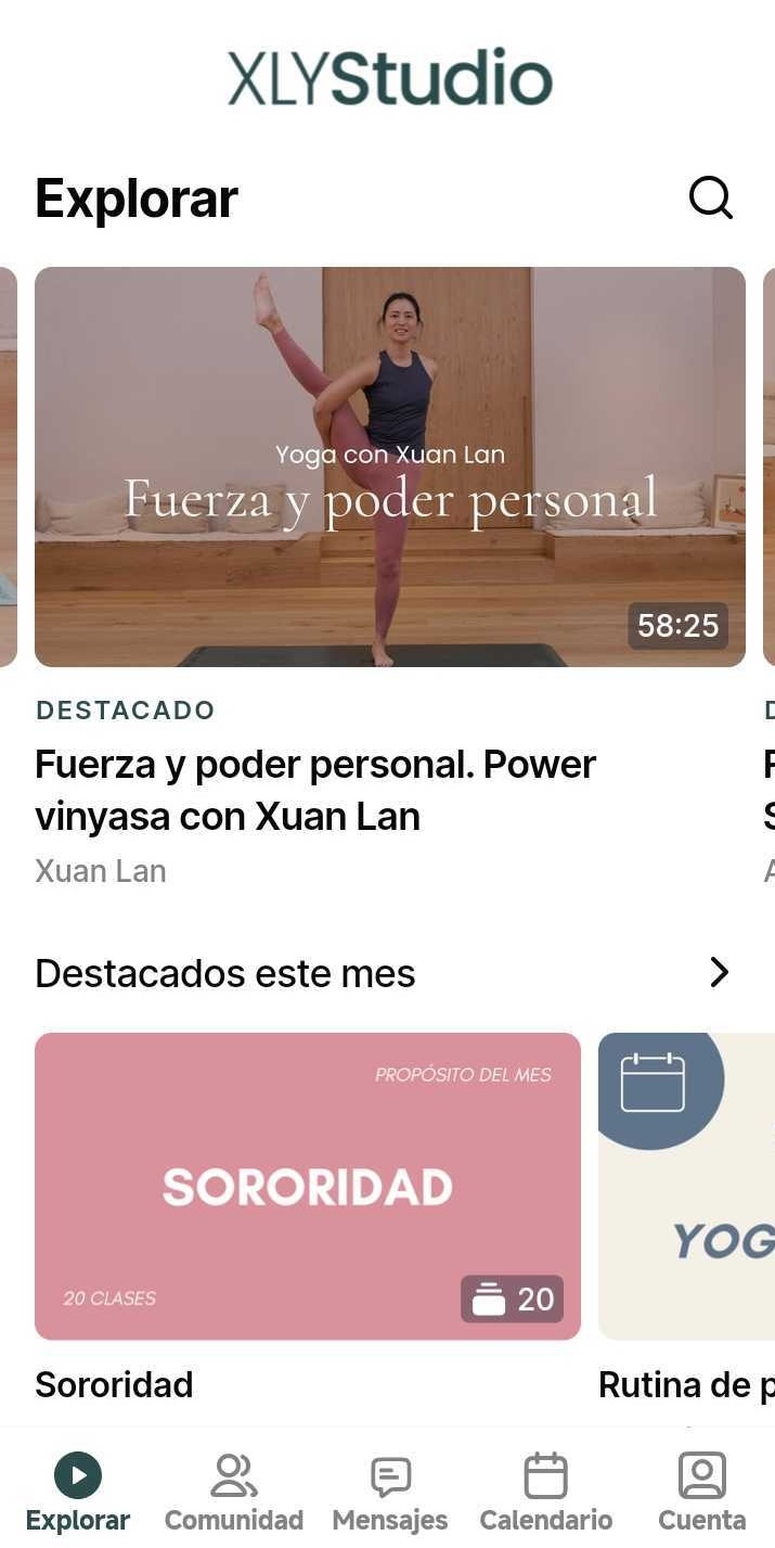 - Explorar: Accede a todo el catálogo de XLYStudio (requiere suscripción activa). También verás los Programas y el Máster 108, ambos independientes de la suscripción general.