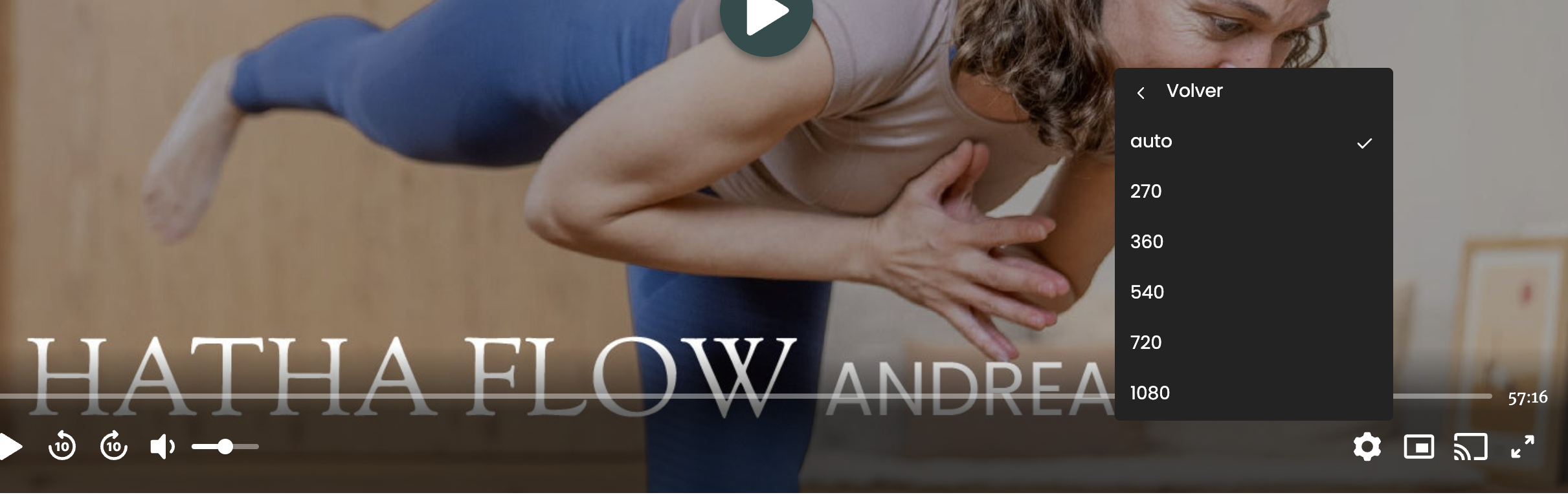 • Desde la web: haz clic en el icono ⚙️ en la parte inferior derecha del vídeo y selecciona una calidad inferior.