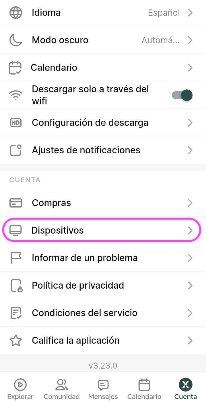 - La app móvil (iOS o Android), en Cuenta -> Dispositivos