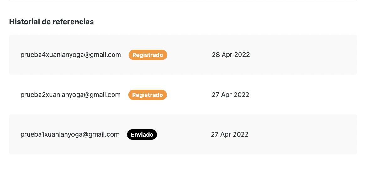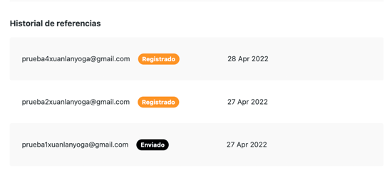 En la misma sección de Recomendar a un amigo, al final de la página, podrás consultar el historial de invitaciones: