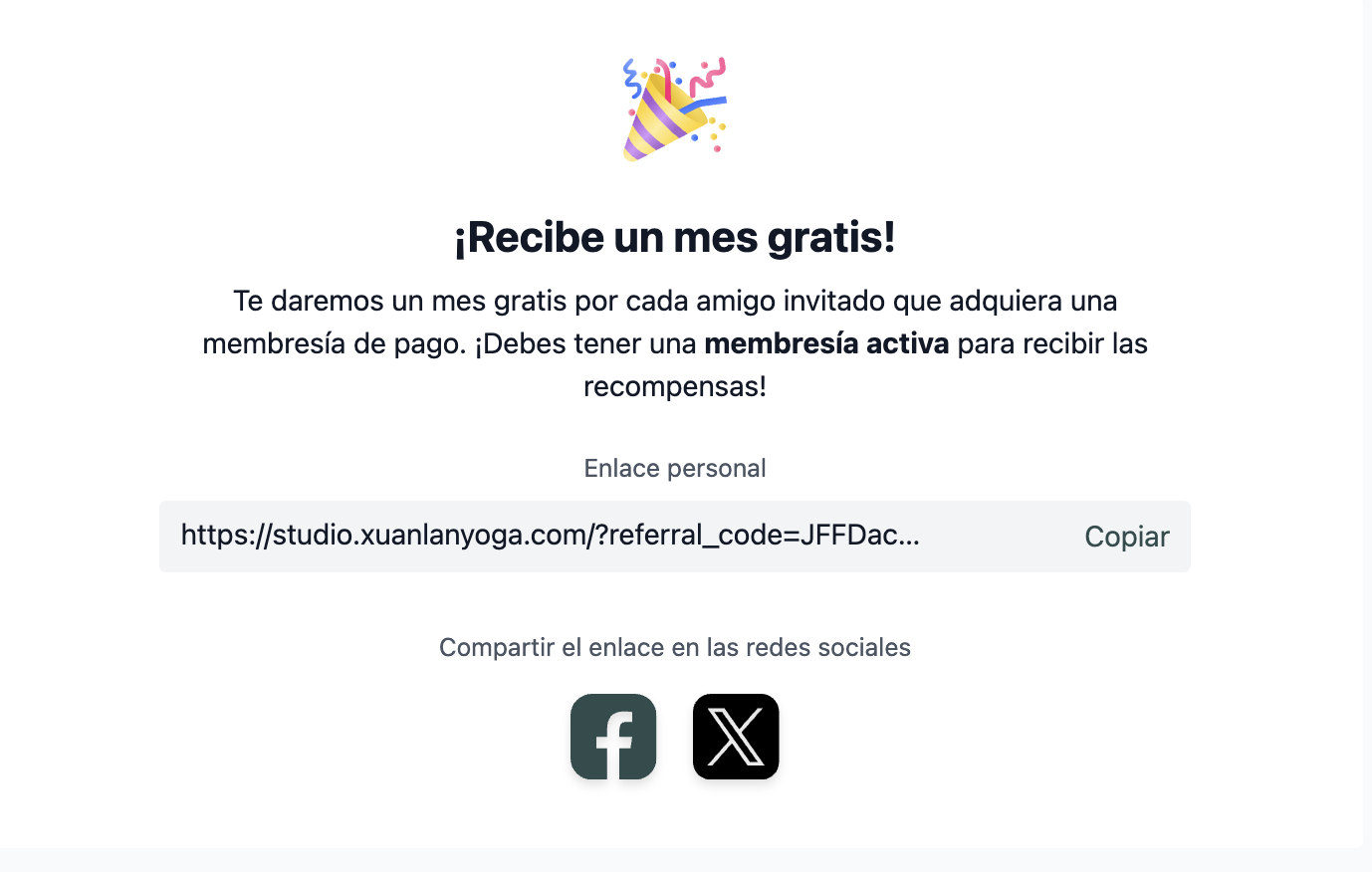 Invita a tus amigos y familiares a XLYStudio y recibe 30 días gratis de suscripción por cada nuevo miembro que se suscriba gracias a tu recomendación. ¡Compartir bienestar ahora tiene recompensa!