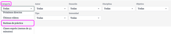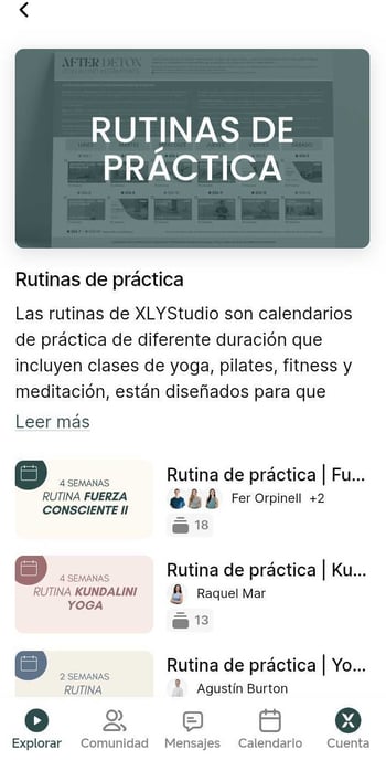 Accede a la web de XLYStudio y dirígete a la pestaña XLYStudio en el menú principal. También puedes usar los filtros por Categoría para localizar las Rutinas rápidamente.