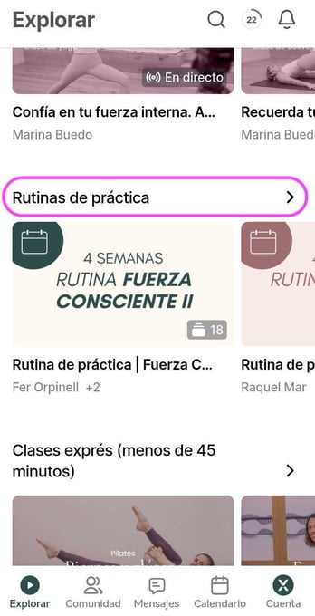Las Rutinas de práctica son calendarios diseñados especialmente para acompañarte en tu viaje de yoga y meditación. Incluyen vídeos de diferentes niveles y duración (entre 7 y 28 días), organizados día a día o por semanas, con el objetivo de ayudarte a: